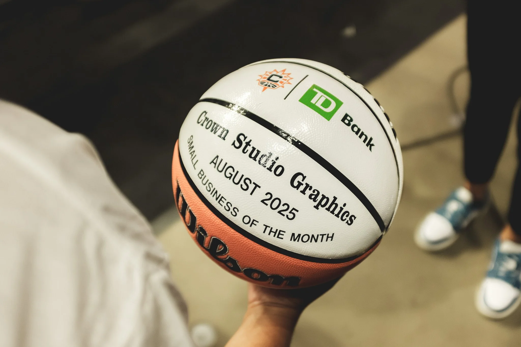 I was invited and honored as the WNBA Connecticut Sun’s Small Business of the Month, presented by TD Bank. Receiving center court recognition during a live game with my business featured on arena jumbotrons. Sharing this moment with my family, especially my oldest son, Julius, made it especially meaningful. This recognition stands as the first major milestone of my career and a defining moment that closed my chapter as Crown Graphics Studio ahead of my rebrand.
